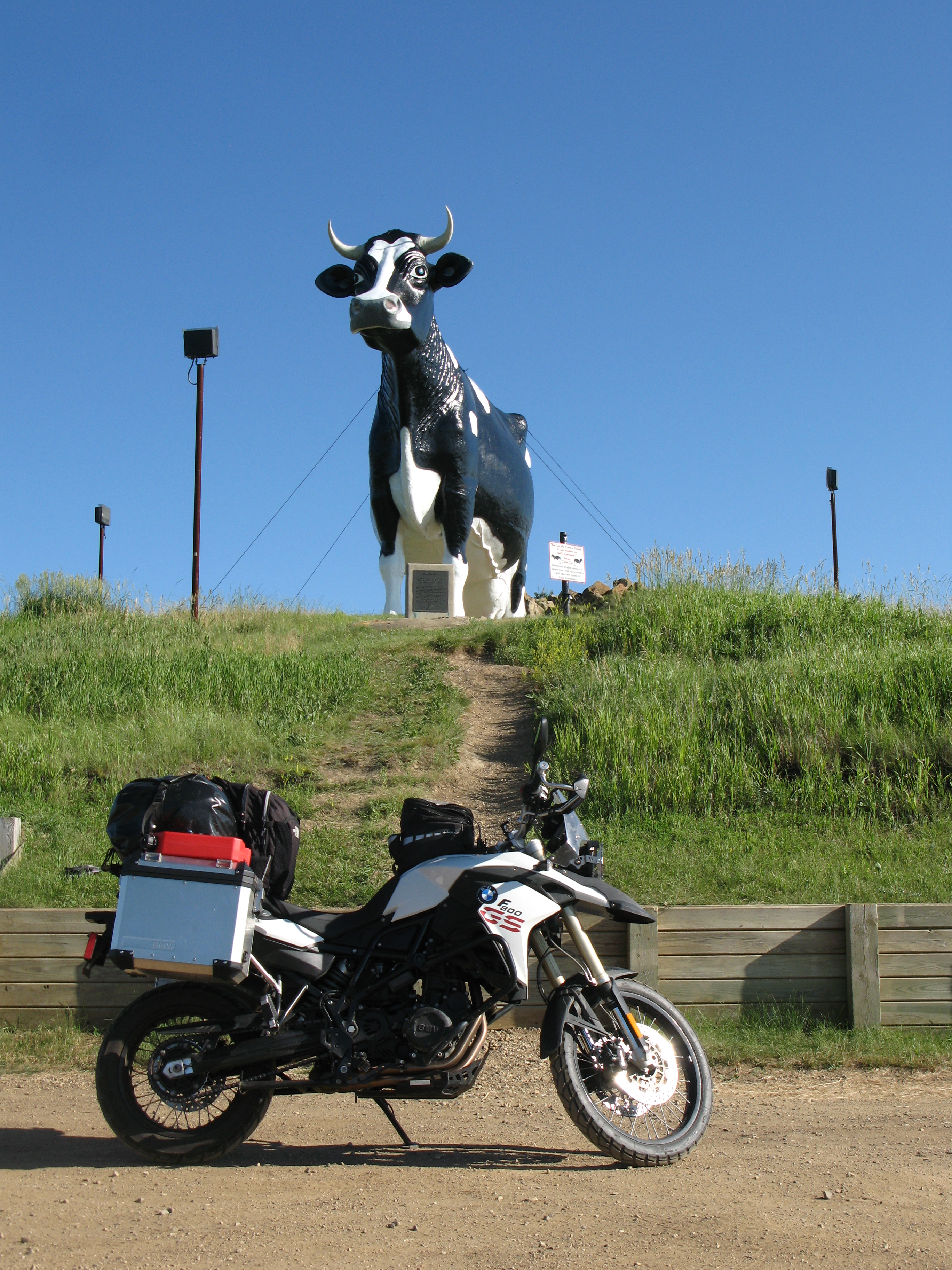 On Sunday morning, it was time to head east to my brother’s place in Fergus Falls, MN, going through Wyoming, South Dakota, North Dakota, and finally Minnesota. I can’t decide if the highlight of the ride was passing three towns called Buffalo, or getting to see Salem Sue, the world’s largest holstein cow.