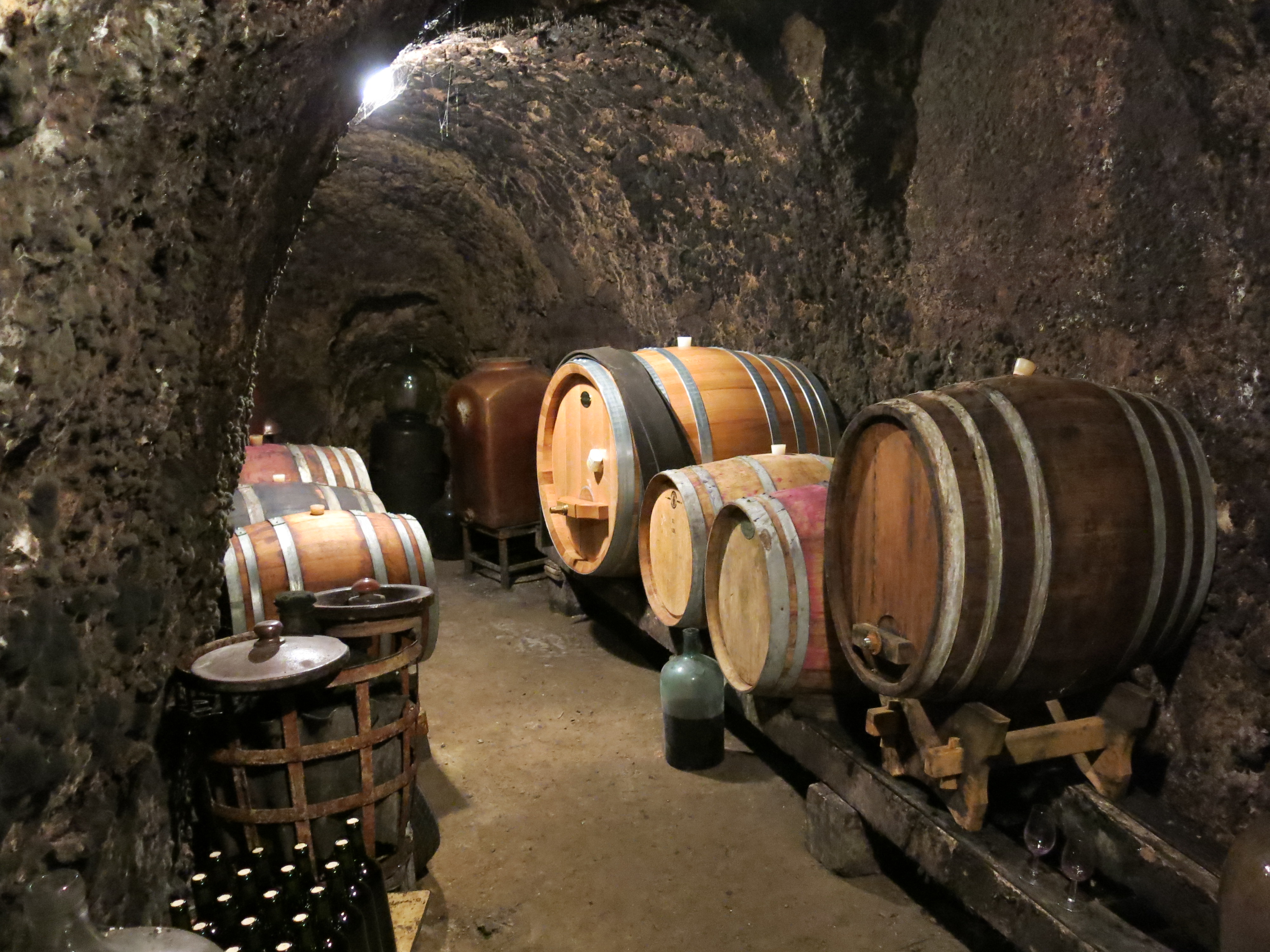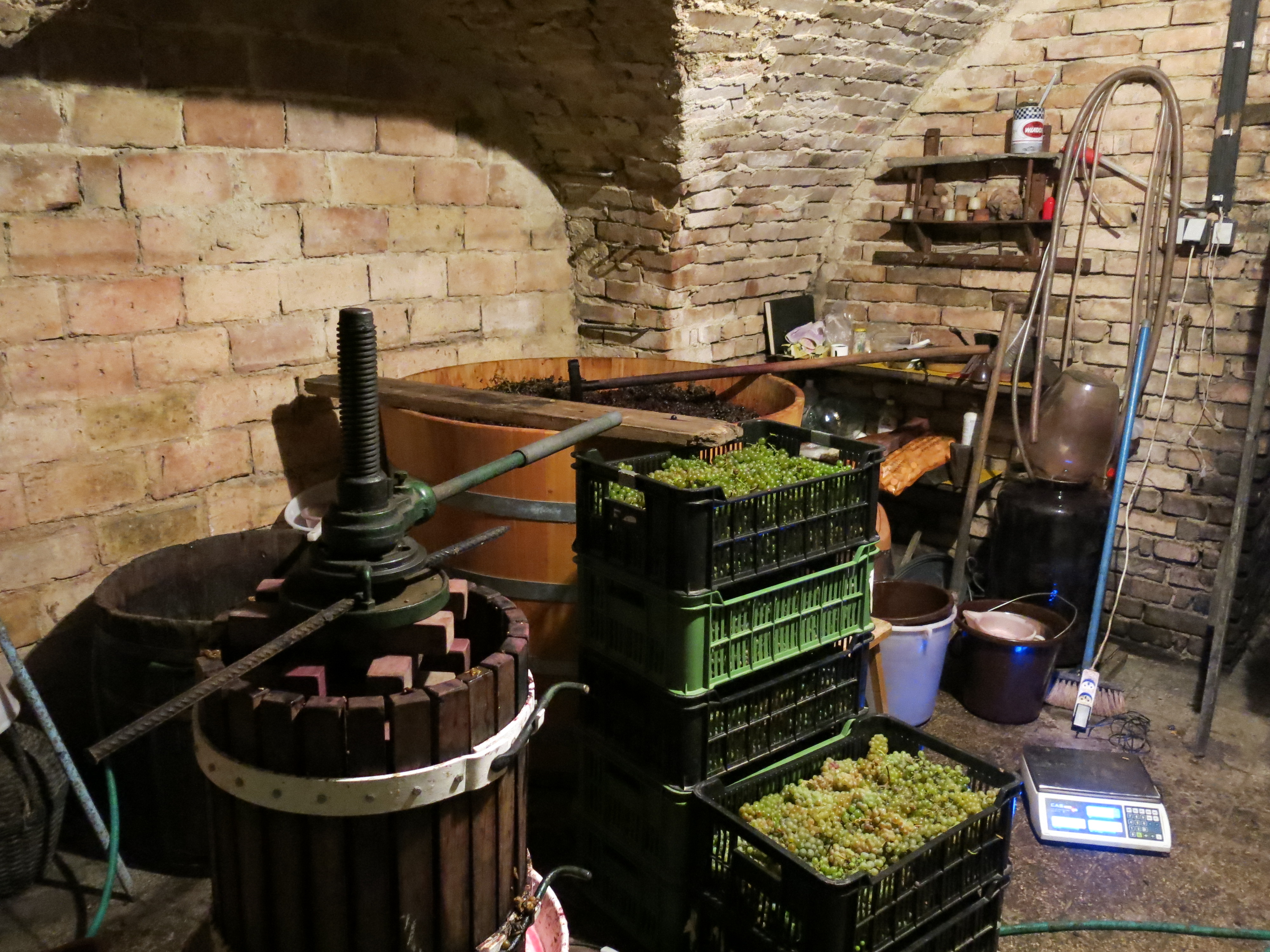 So far, it’s been a really interesting experience.  I’ve brewed some beer in the past, so I was really excited to see how the wine process works.  And at this winery, it’s far different than typical wineries or breweries.  Richard is in control of the entire process, from planting vines, to harvesting, to bottling, and everything in between…it 100% his work, which I find pretty amazing.  All the wine is organic, made with wild yeast and open fermentation, and no fancy automated or electronic machinery is used in the process.  If you spend the day crushing or pressing grapes, you’re going to have sore arms the next day.  The whole process is much like how wine would’ve been made centuries ago.  Add in the look of the wine cellar, and it feels like you’ve taken a time machine back to the middle ages.