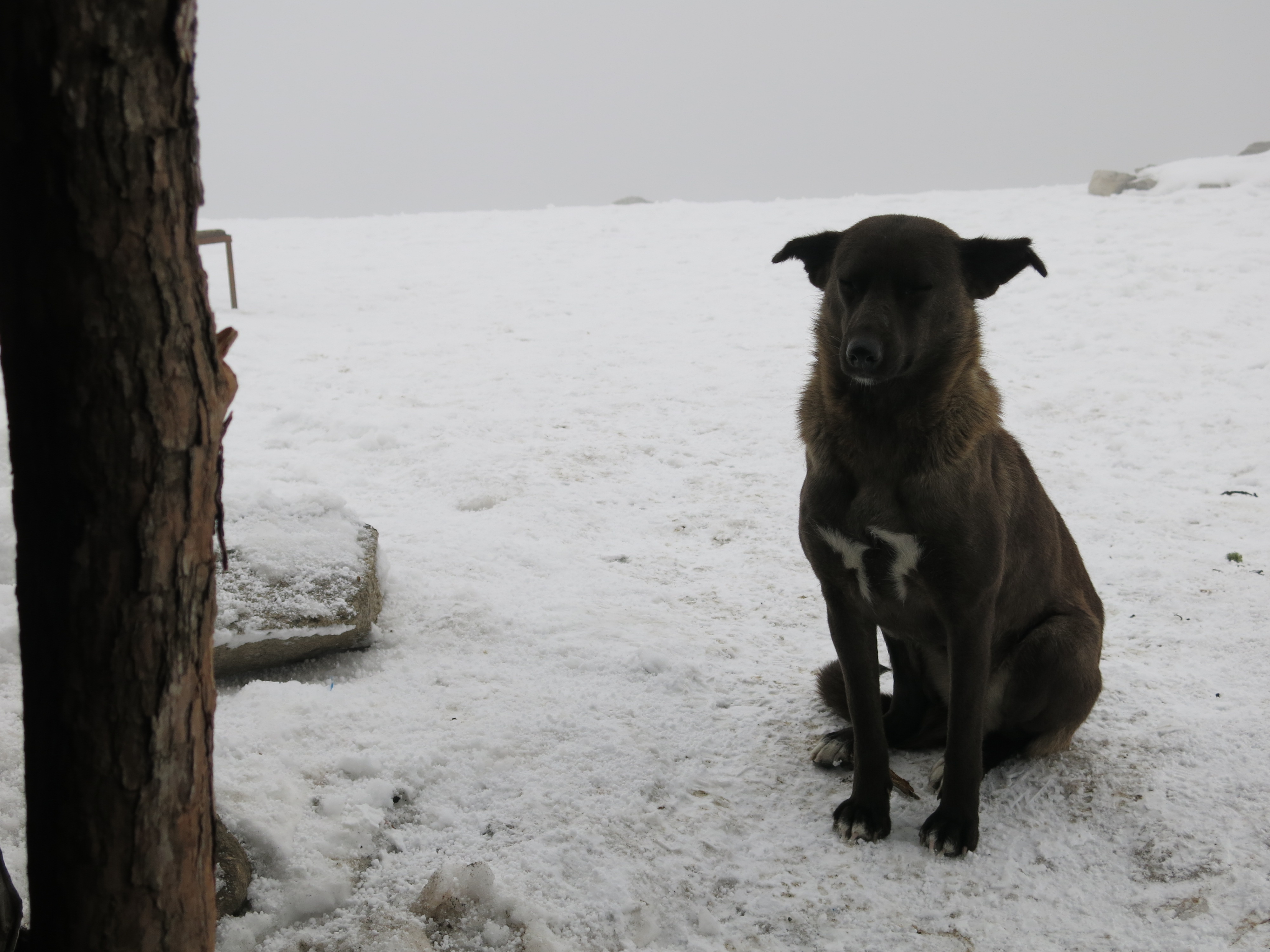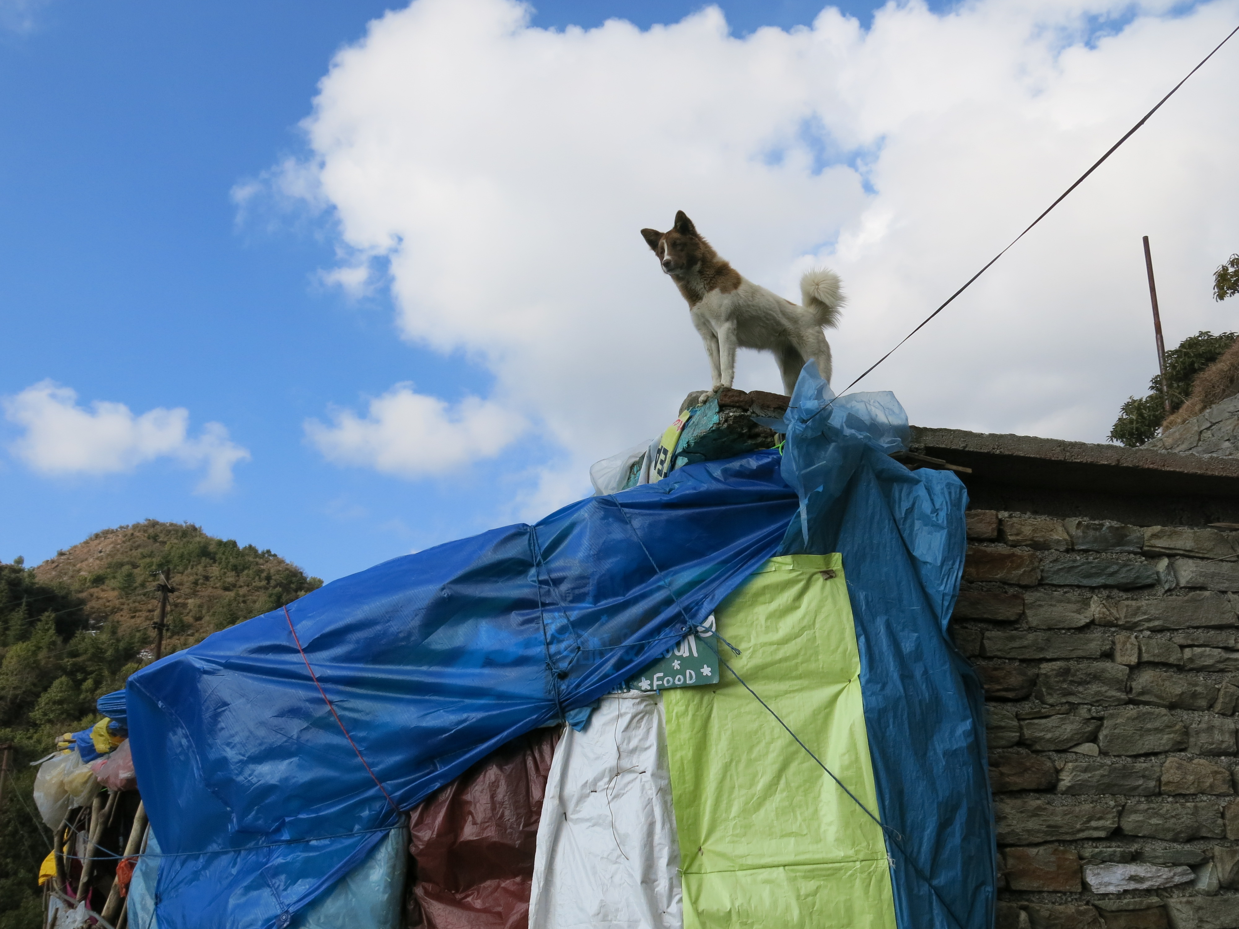 Back home, friends and I would often joke about how it’d be great to have a beer/food/etc. waiting at the end of a big hike or climb. To my surprise, this dream finally came true. At the top of this ridge line, there was a little shop where I warmed up with a nice cup of coffee. While in the hut, I saw this devout Buddhist dog that spent most of the time meditating.