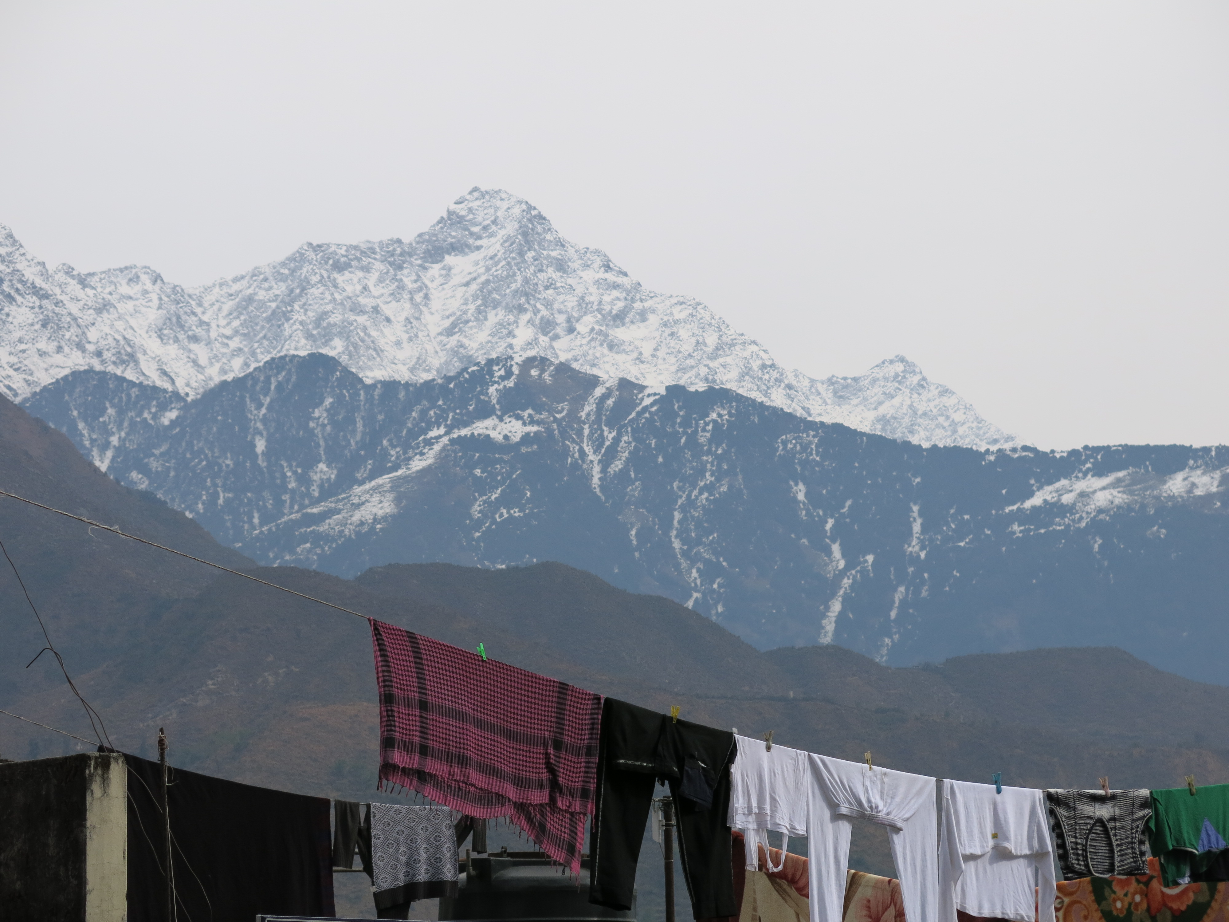From Chandigarh, I had a full day of riding (on the roughest paved road I’ve ever seen) to get to Mcleodganj. First thing in the morning when I left, there was a very light fog…just enough to accumulate on my visor and blur my vision, but little did I know, it wasn’t enough to keep the dust down. So every couple minutes, I’d use the trusty finger squeegee on my left glove to clear my visor. Unfortunately, with each swipe, not only was I wiping away water, but I was also slightly scuffing the visor with the dust that was being kicked up from the road. When the fog cleared a couple hours in, my visor was definitely not clear…shit. Luckily, I typically like to have the visor up when the weather is good, so it’s at least not the worst thing. But by the end of the day, the amount of diesel exhaust I drove through was pretty obvious.