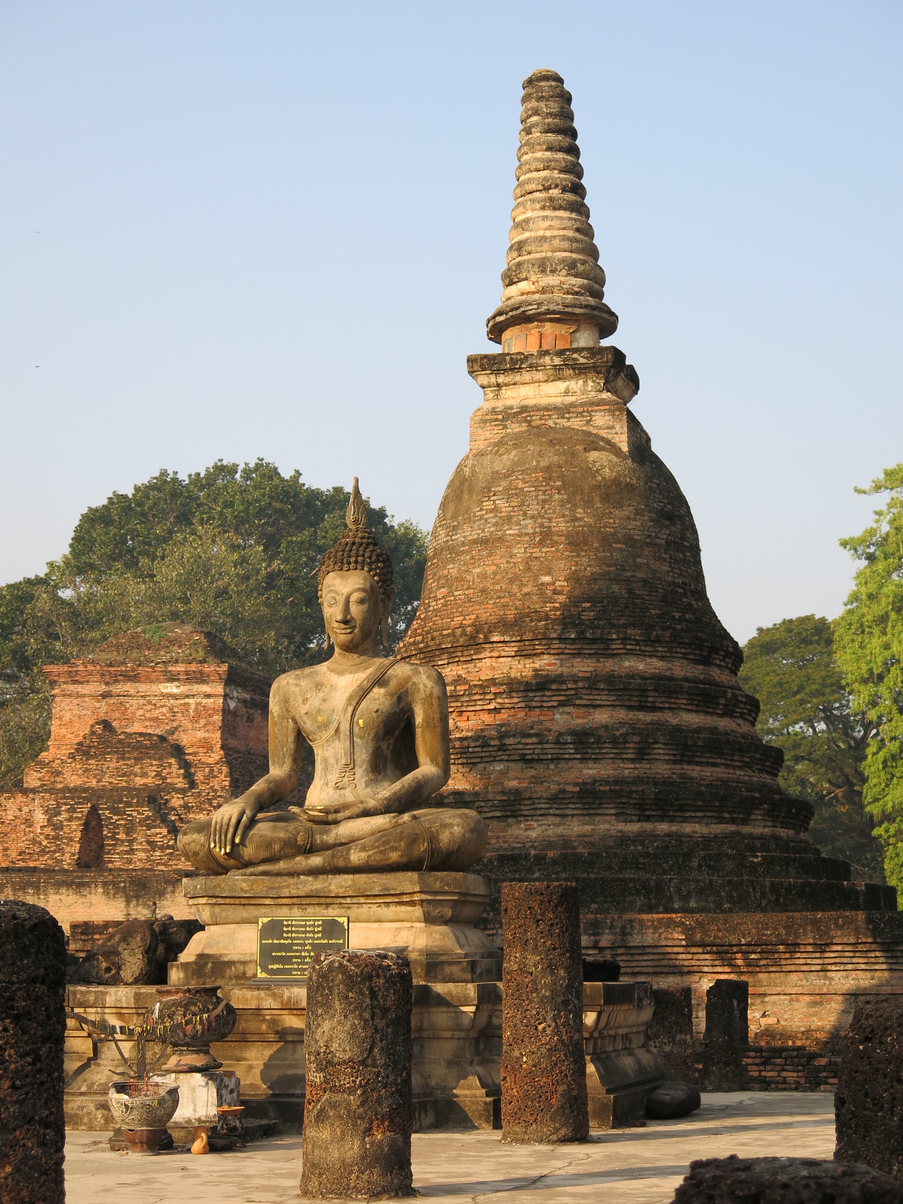In the evening, I arrived in Sukhothai. It was established in the mid 1200s and was the capital of Siam for about 120 years. I stayed in the newer part of Sukhothai, but in the morning, before leaving, I went to check out the historic Sukhothai. Like Ayutthaya, it has a lot of ancient temples to see, But I’d say the display here is more impressive. Its a bit better preserved, and feels a little more isolated, since its away from the new city, where as Ayutthaya as been more built up right around the ruins.