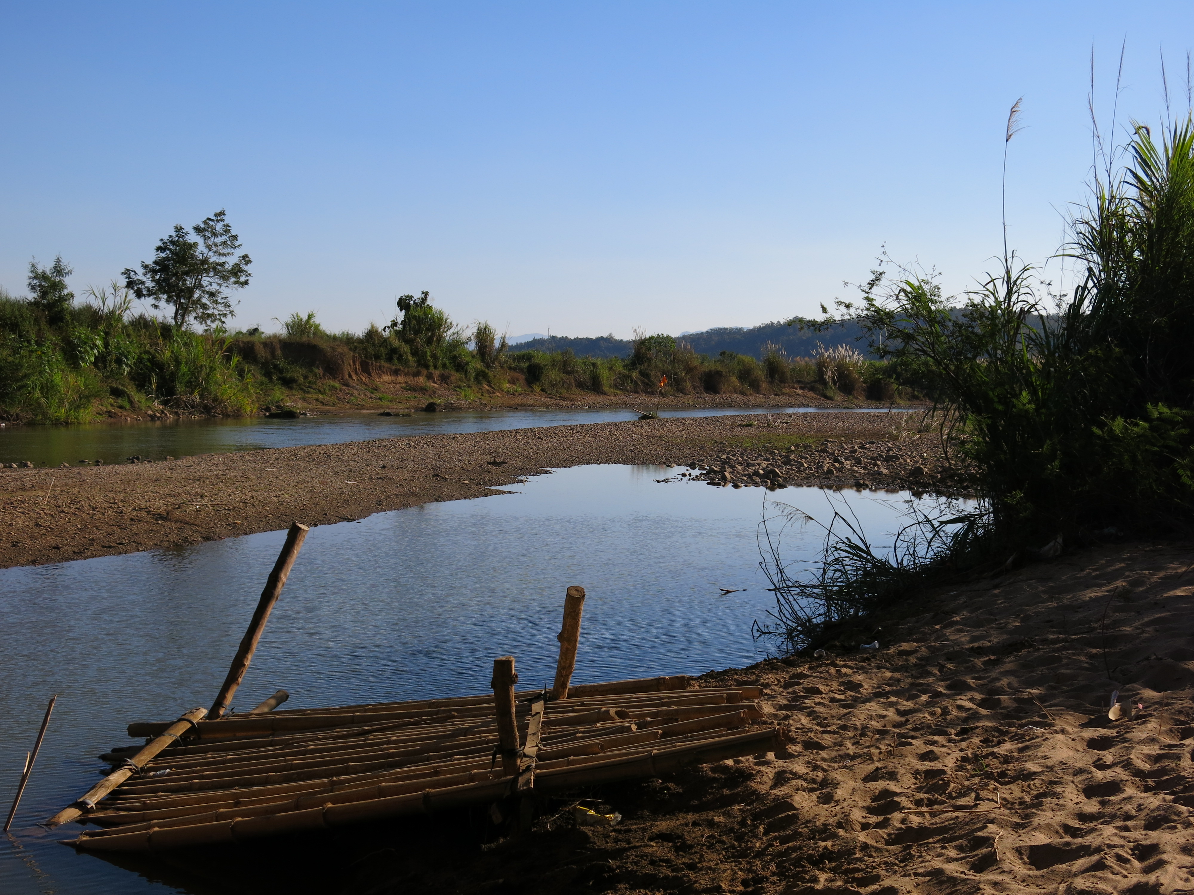 Time for an evening swim down by this little Huck Finn style raft in the river outside of town.