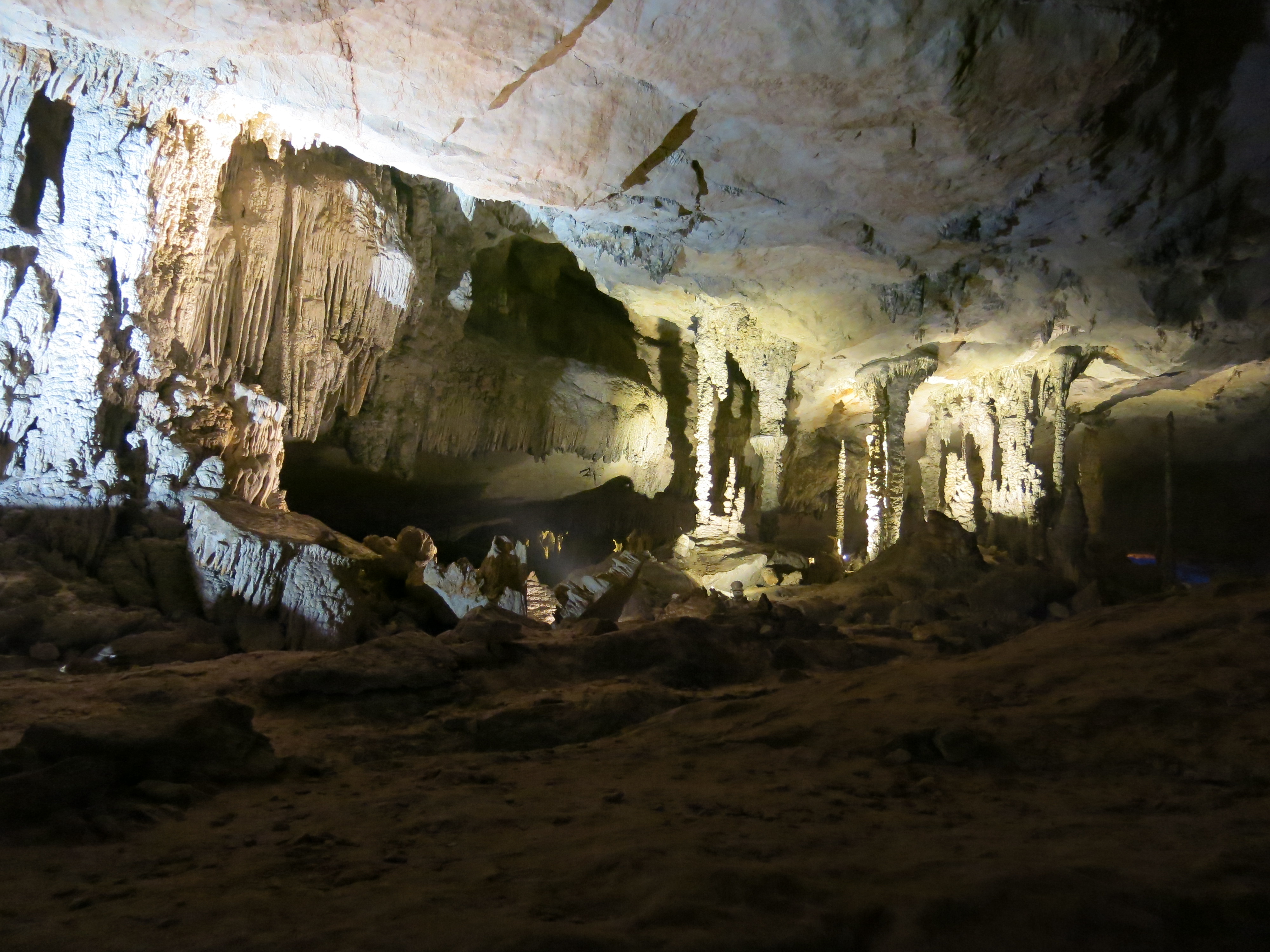 The cave is about 7km long and up to 100m high in some parts, and a river flows the entire way through it.