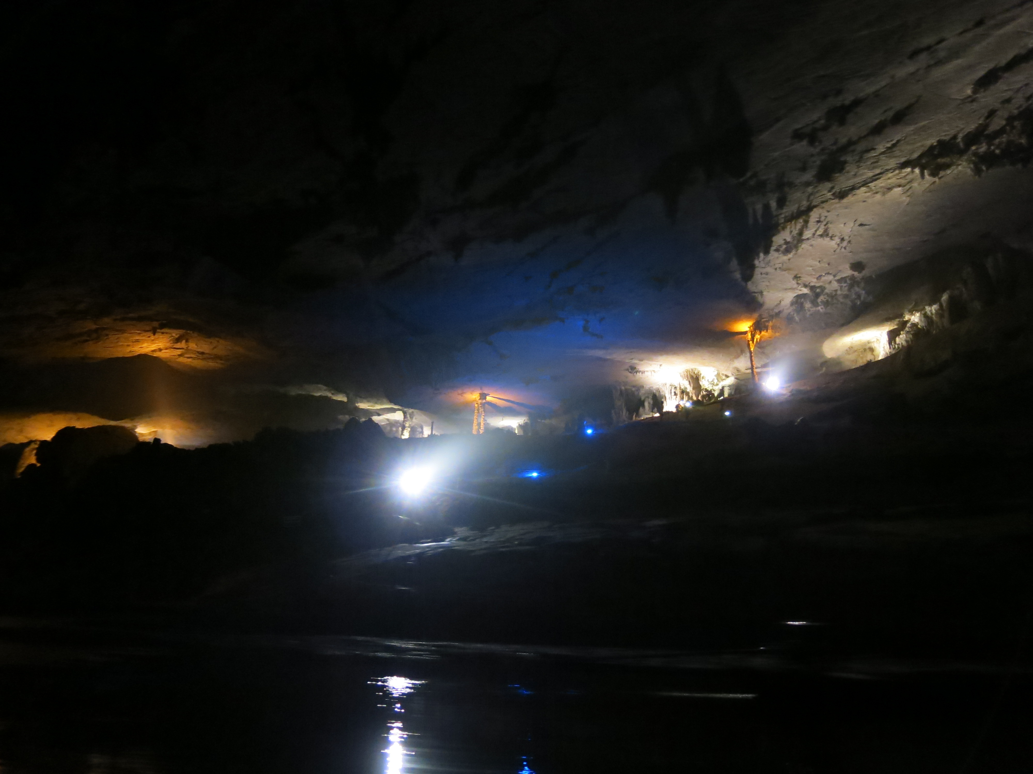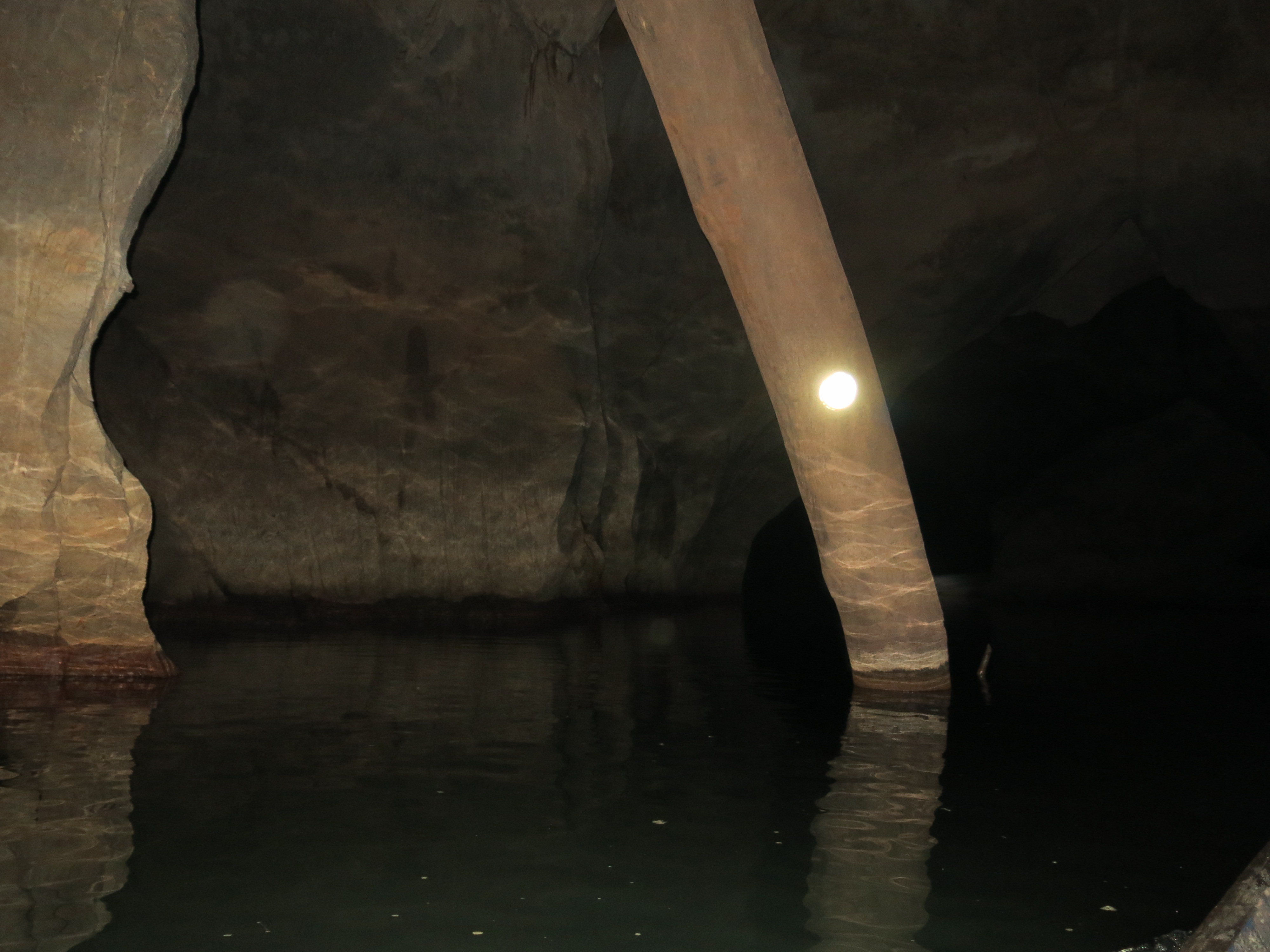 There’s only one small section that has any lights, and you get out there to walk around a bit, otherwise the whole trip is by boat (minus one or two quick bits where you have to jump out so the boat can be pulled through a section of rapids). So the majority of the time, you’re in the pitch black, with nothing but a headlamp to try and illuminate the cave walls…oftentimes, this is the view you have, especially in the very large sections where the headlamp doesn’t do all that much.