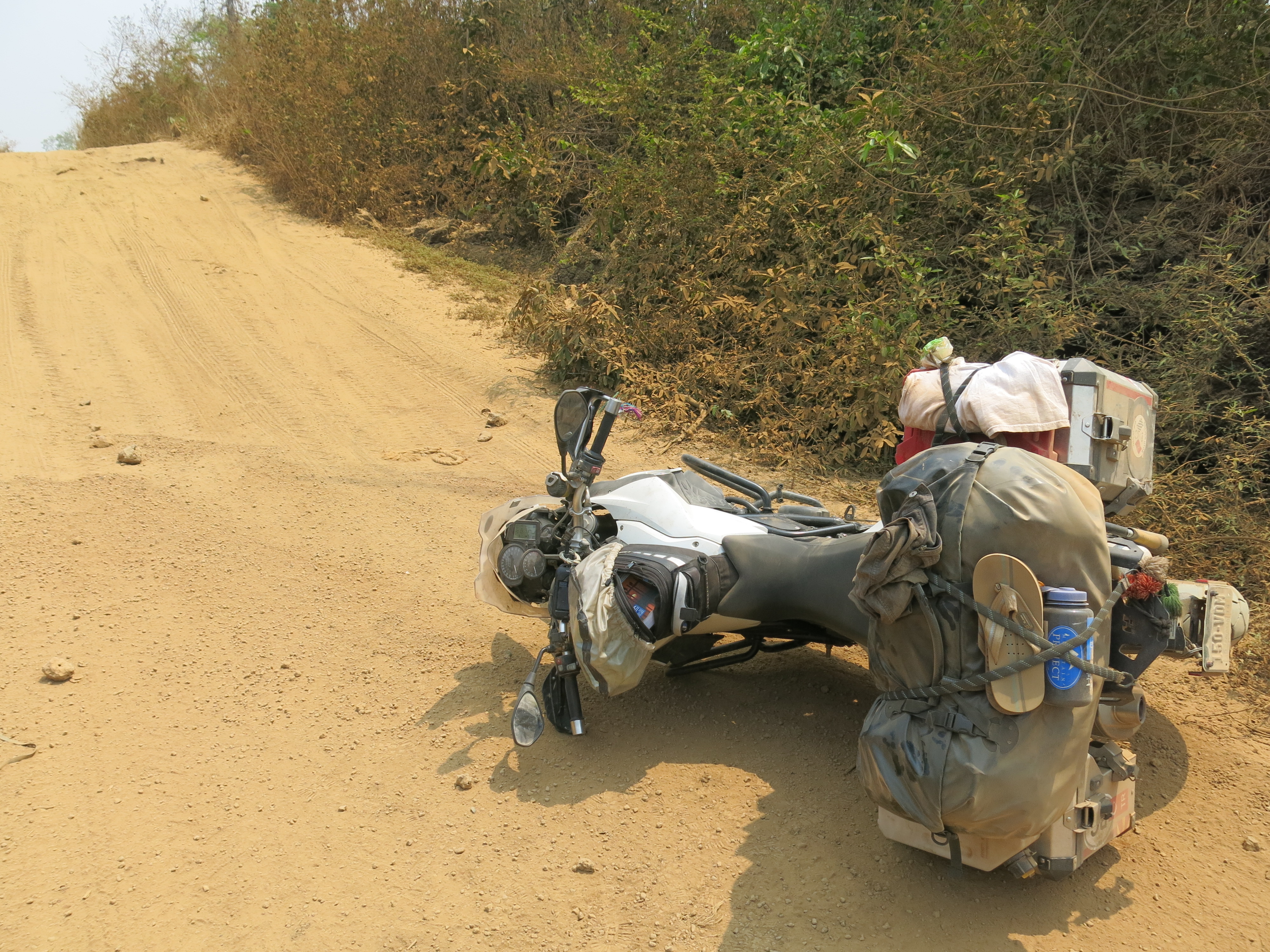 It involved good asphalt, crap asphalt, gravel covered asphalt, hard packed dirt, loose gravel, looser gravel, washboards, rocks, ruts, sketchy bridges, steep hills, sand, silt, river crossings, and falling.