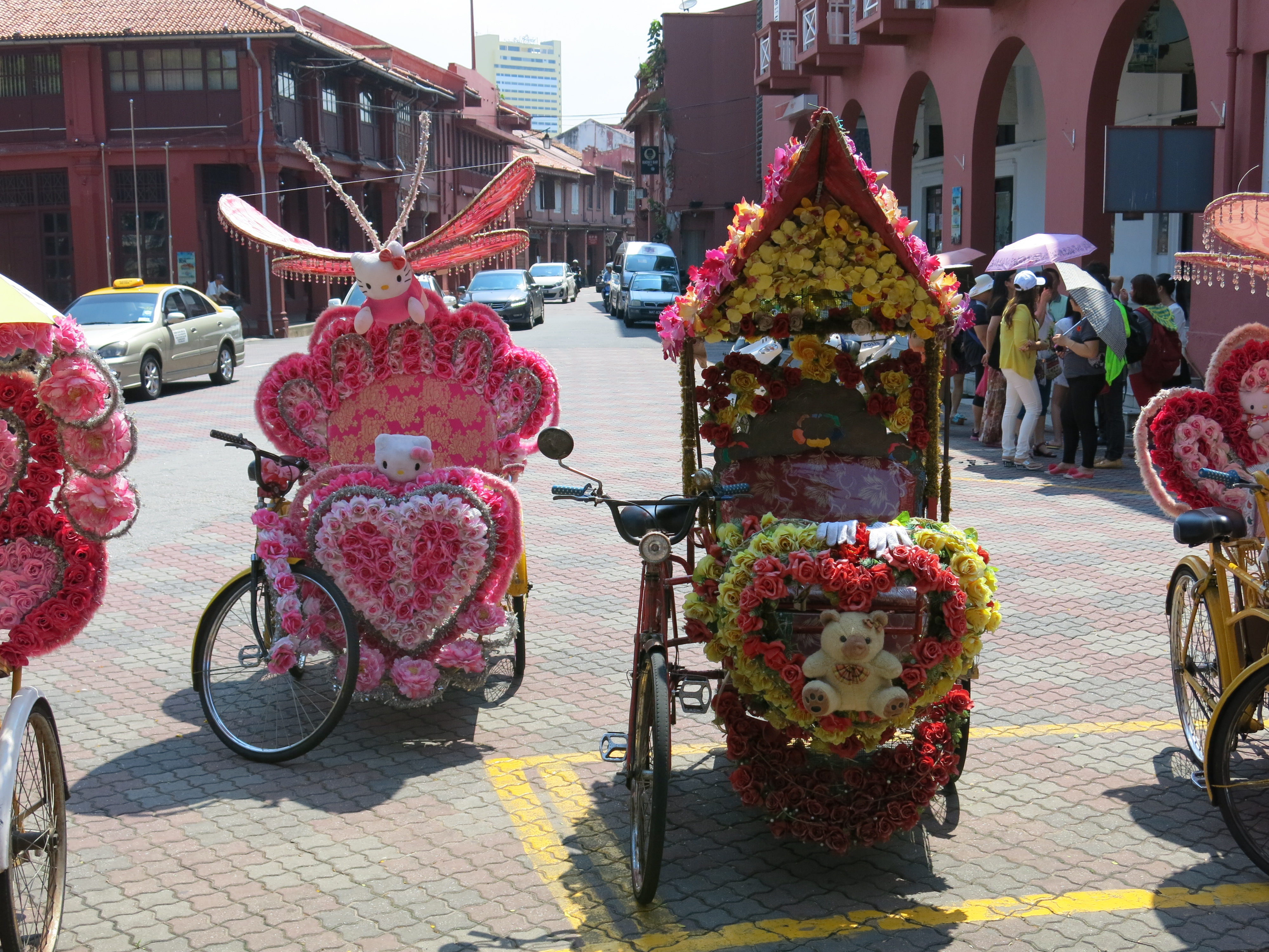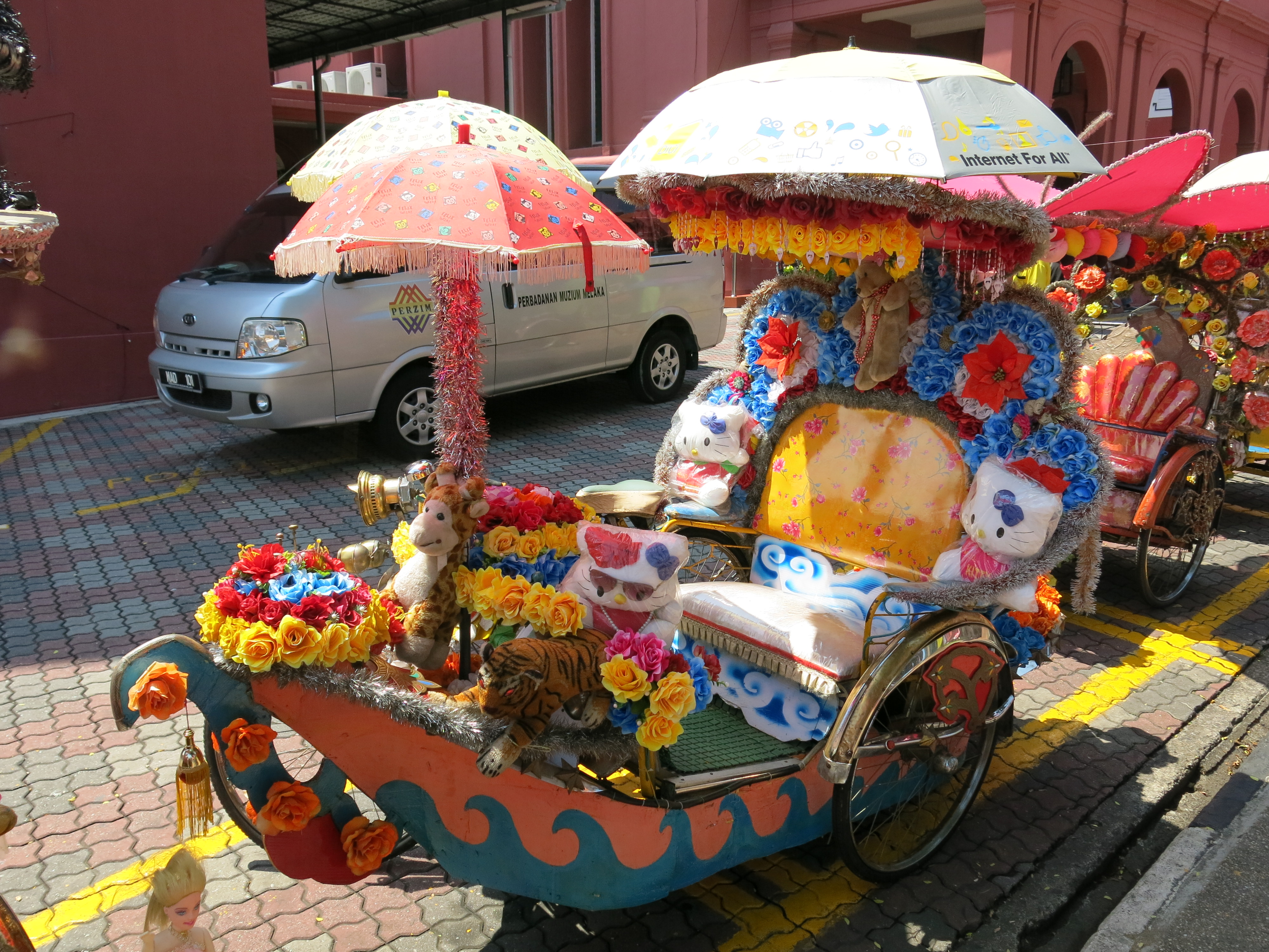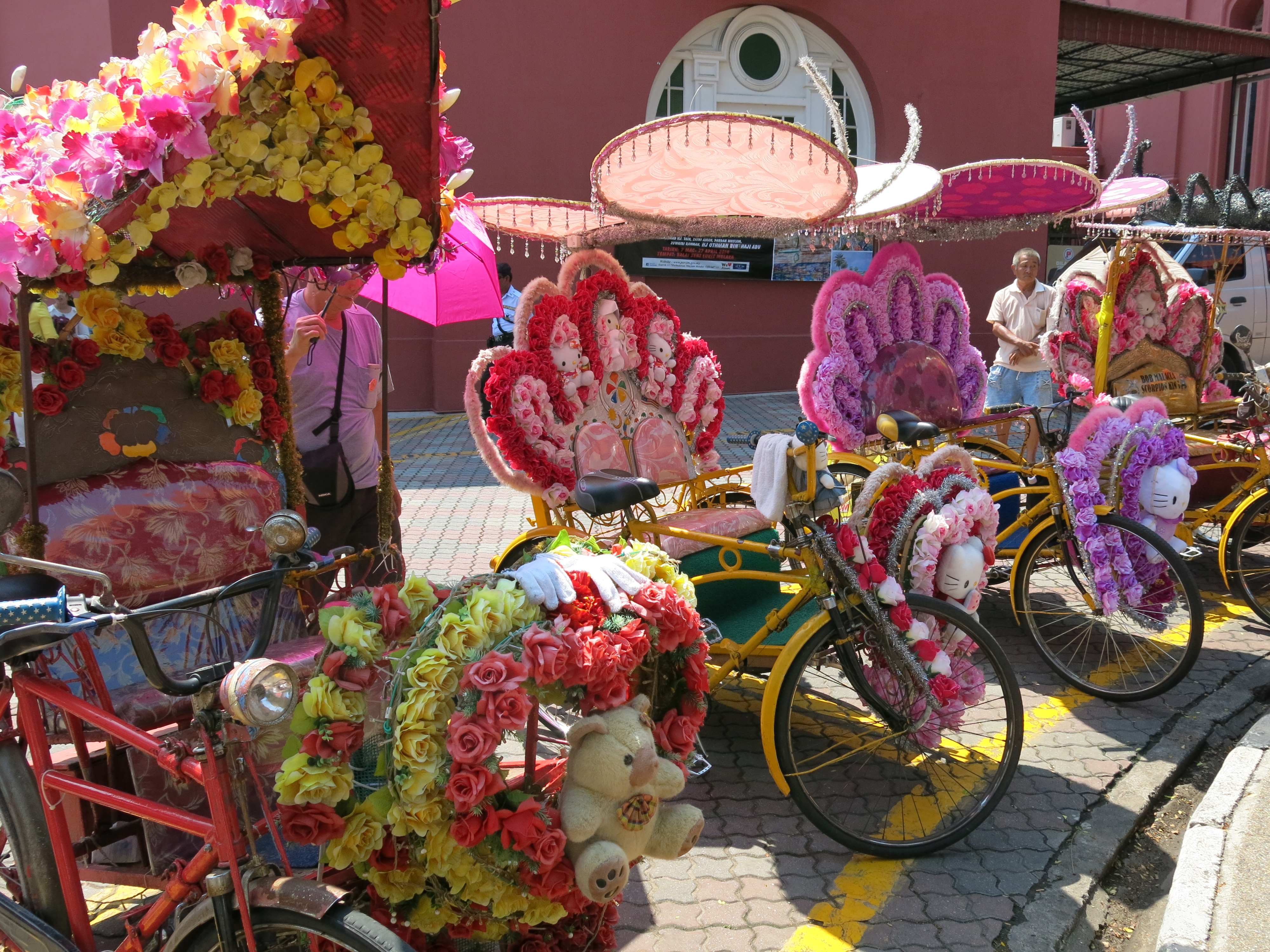 Transportation throughout the city is not achieved by taxi or tuk tuk, but rather by trishaw, which are customized beyond belief, with artificial flowers, stuffed animals, stereo systems, and lights (at night).
