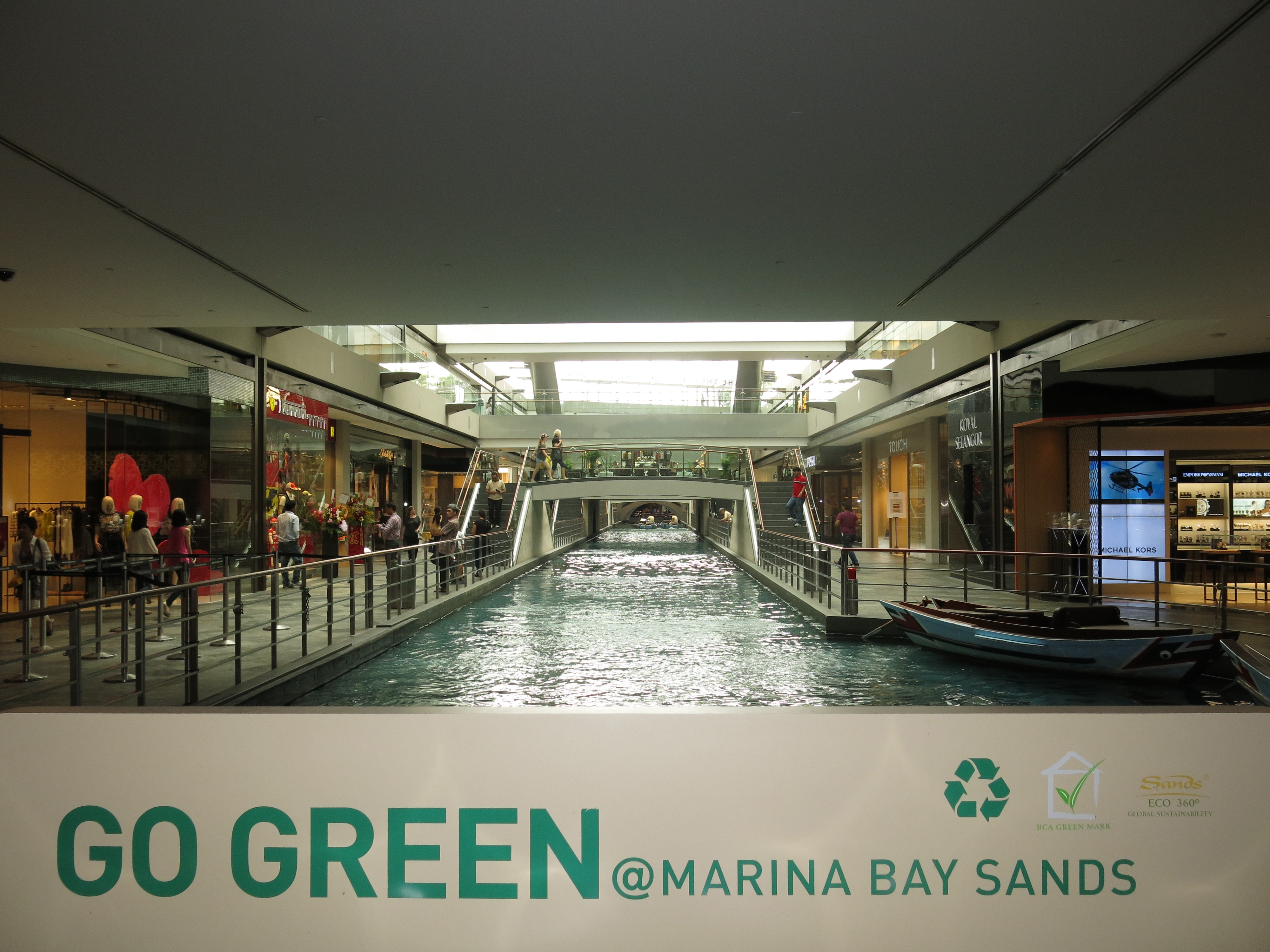 In the Marina Bay Sands shopping center…surely the first step to “going green” is not doing something as ridiculous as putting a river in a shopping mall.