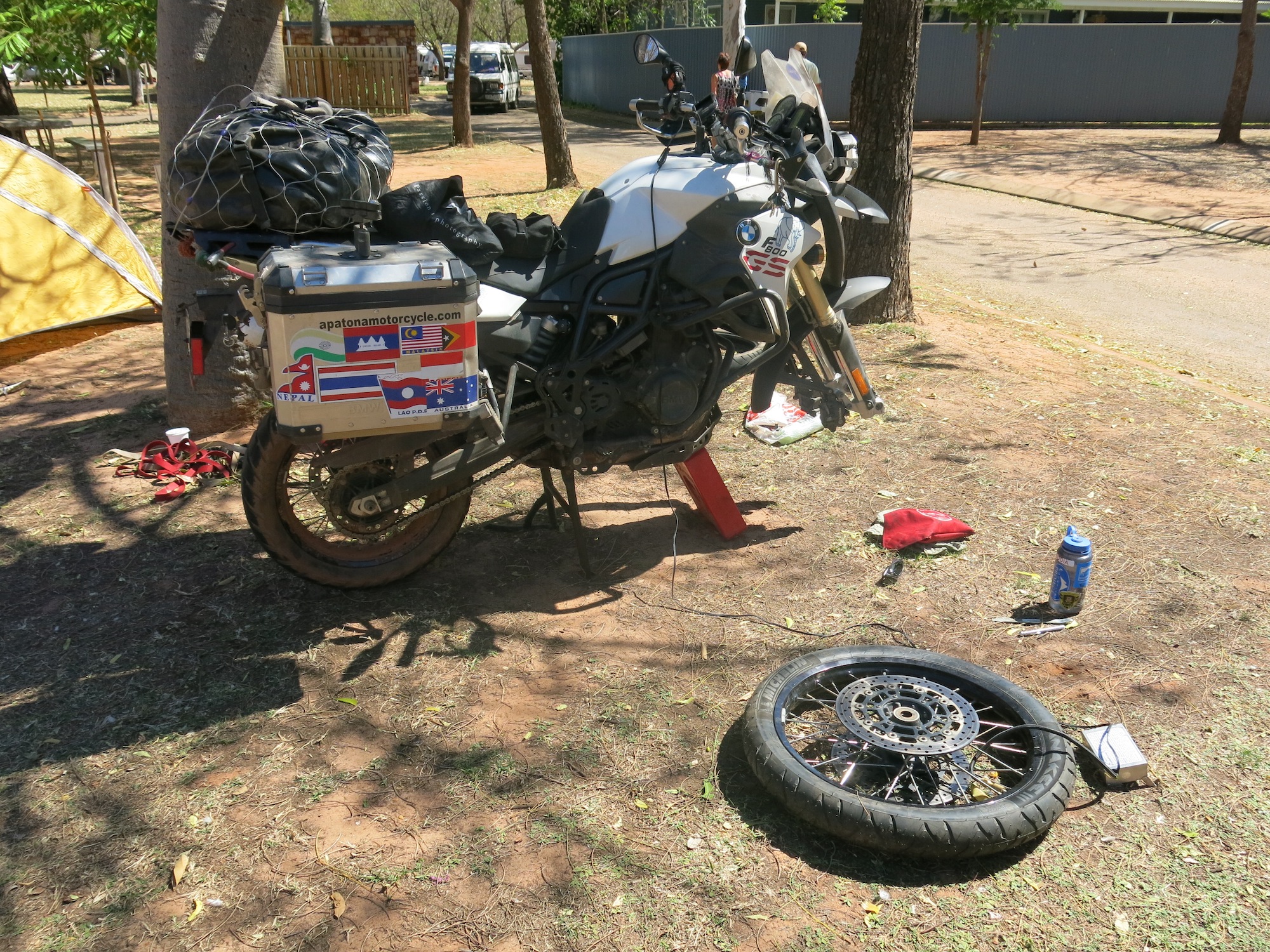 When I unbolted the old sprocket and tried to make up the new (aftermarket) one that I got in Darwin, I found that the bolt holes on the sprocket were too small…looks like the issues that I thought I was finished with in Darwin have come back to bite me in the ass! Oh well…the rear sprocket didn’t desperately need to be changed, so I put the old one back on and will plan to get a new one whenever I get my new rear tire.