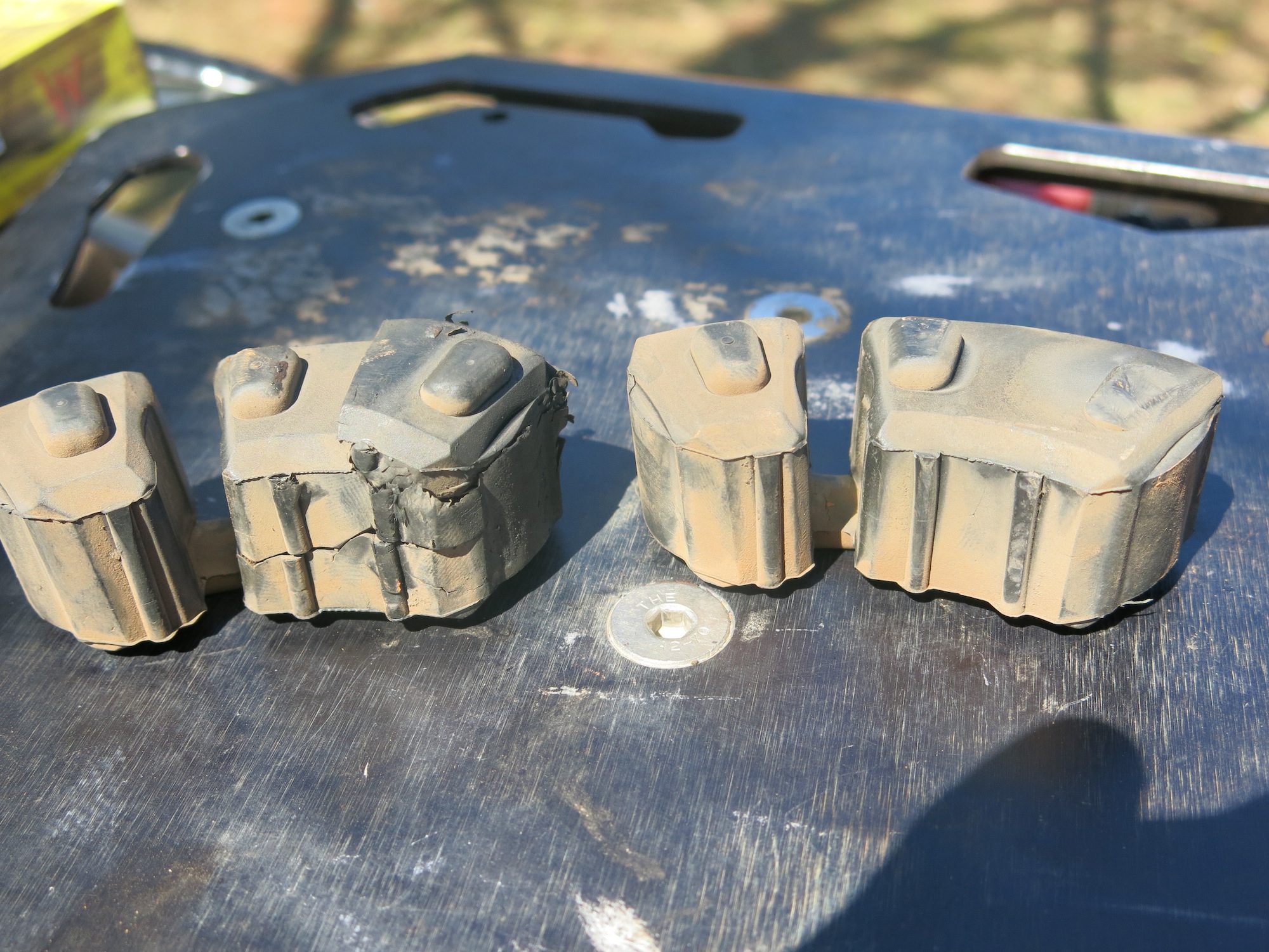 With the old chain taken care of, I got to work on replacing the rear sprocket. When I took the sprocket off the wheel, I noticed that one of the 4 cush drive pieces (there’s probably a much better name for them than that…) in the hub was in pretty rough shape